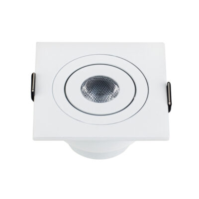 Врезной квадратный мебельный светильник 3Вт, корпус белый алюминий. Цвет БЕЛЫЙ 5500K-6000K. Светодиод 1х3W CREE XPE. Св.поток 140-160лм, наклоняемая ось, угол 30°. Питание 110-240VAC, 3Вт, 700mA 3-5V, драйвер в комплекте. Размеры 60x60x43 мм, врезное отверстие d50 мм.